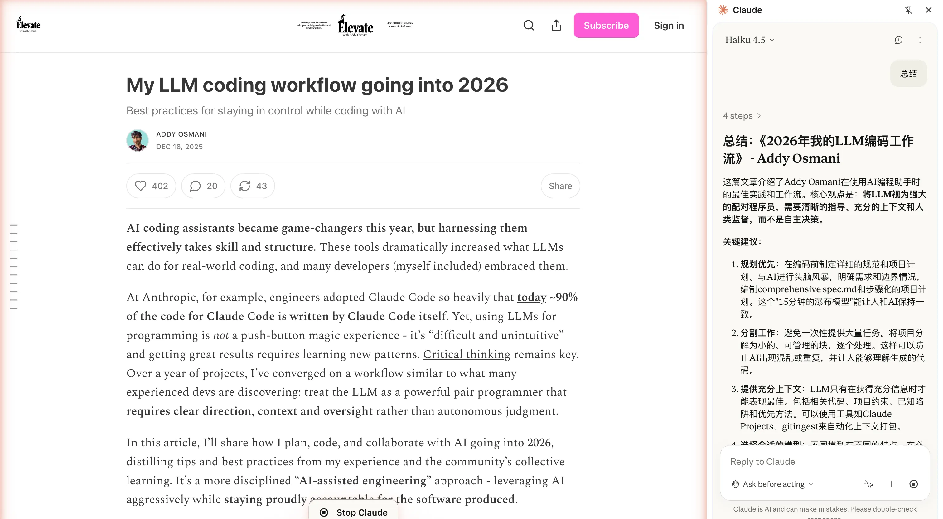 Dify 在 AI 产品上的报销额度十分慷慨。 我之前主要用的还是开源免费的 Copilot,觉得什么模型都能用,也挺好的,就是到了月底用量就会不够。 现在是 Claude Code 和 VSCode 混着用。 Claude 有一个浏览器插件可以用,这对我这个 Chrome 党很友好,不必用 Atlas。
