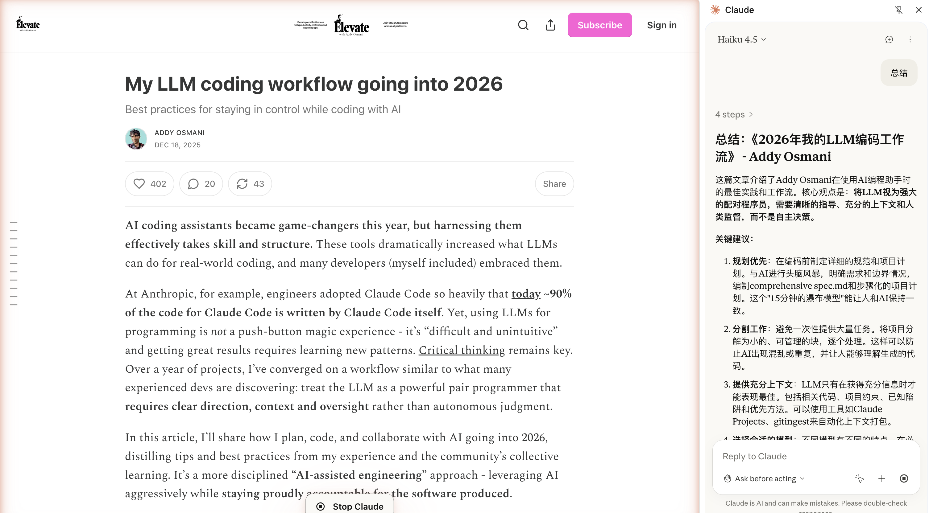 Dify 在 AI 产品上的报销额度十分慷慨。我之前主要用的还是开源免费的 Copilot,觉得什么模型都能用,也挺好的,就是到了月底用量就会不够。 现在是 Claude Code 和 VSCode 混着用。Claude 有一个浏览器插件可以用,这对我这个 Chrome 党很友好,不必用 Atlas。