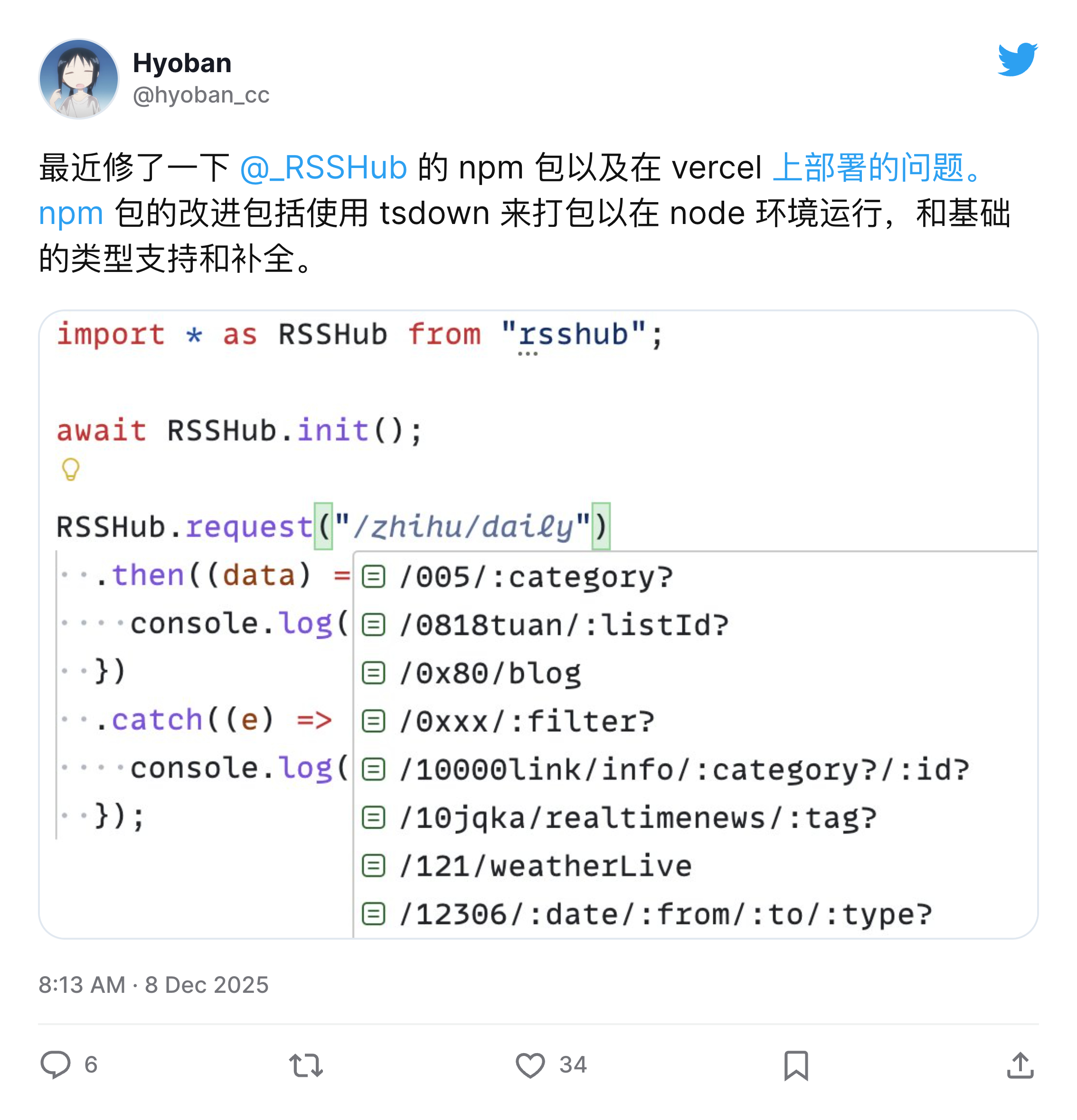今年大多数开源贡献都是从 Folo 出发做的一点小打小闹,比如维护了一点 RSSHub。